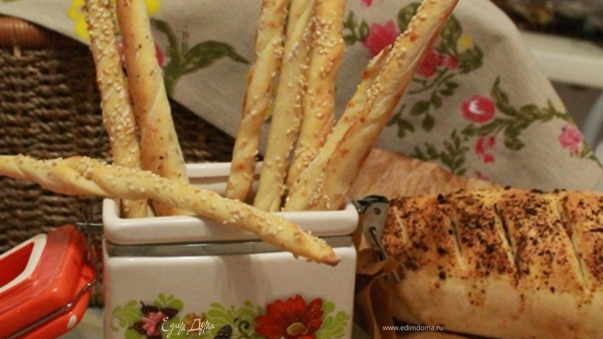Затем выложите тесто на рабочую поверхность, отрежьте небольшой кусок , присыпьте кунжутом и раскатайте скалкой, смазанной растительным маслом, в пласт толщиной 0,5 см. Разрежьте на полоски шириной в 2 см и скрутите в жгут. Повторите с каждой полоской и уложите на противень. Смажьте каждый жгут разведенным в молоке крахмалом и присыпьте кунжутом. Время расстойки 20 минут. Выпекать при 200 градусах до золотистого цвета. Следующую партию палочек приготовьте с прованскими травами.