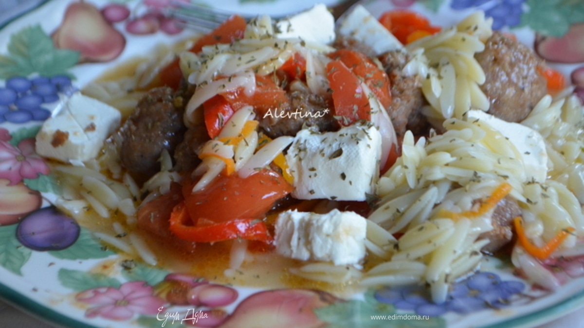 Отварить пасту орзо в курином бульоне, посолив 8-10 мин. Можно развести бульон водой. Обжарить колбаски, порезав на части примерно 4 минут, сняв кожицу по желанию. Добавить порезанный чеснок мелко и обжаривать еще 1 мин.