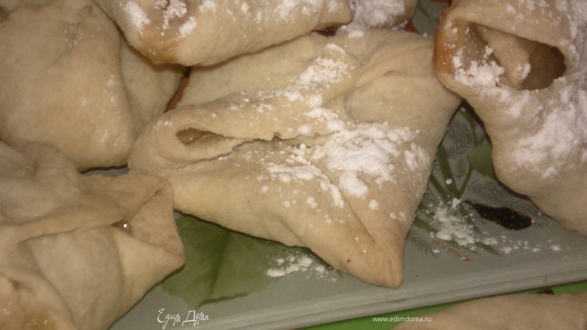 Выпекаются конвертики 25-30 минут. Вытащить их, переложить на тарелку и присыпать сахарной пудрой. Приятного аппетита!