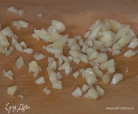 Чеснок почистить, раздавить плоской стороной ножа и мелко порубить.