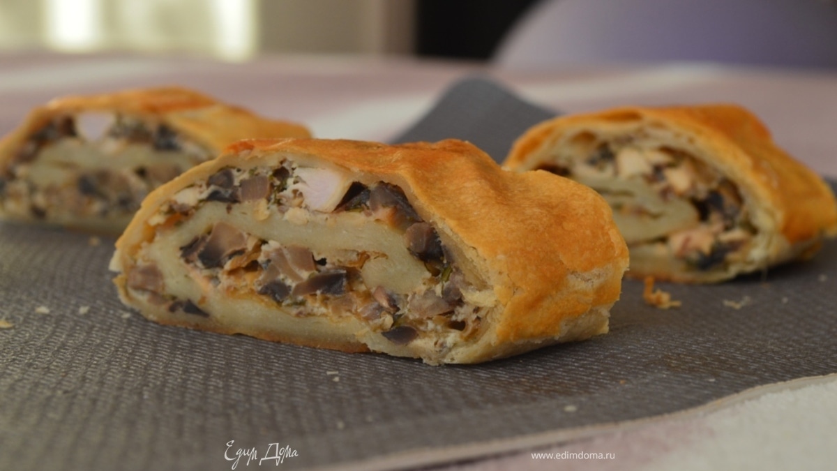 Слоёный рулет с курицей и грибами