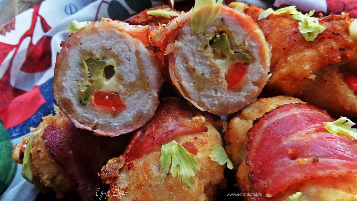 Замечательные вкусные рулетики, Танечка! 😋 Готовлю похожие только в качестве "начинки" на бекон кладу просто листики шалфея! 🌿🍃🌿 У тебя очень яркая и аппетитная начинка в рулетиках... ))))) 💐