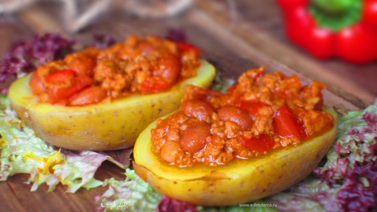 Картофель, фаршированный мясным рагу с фасолью