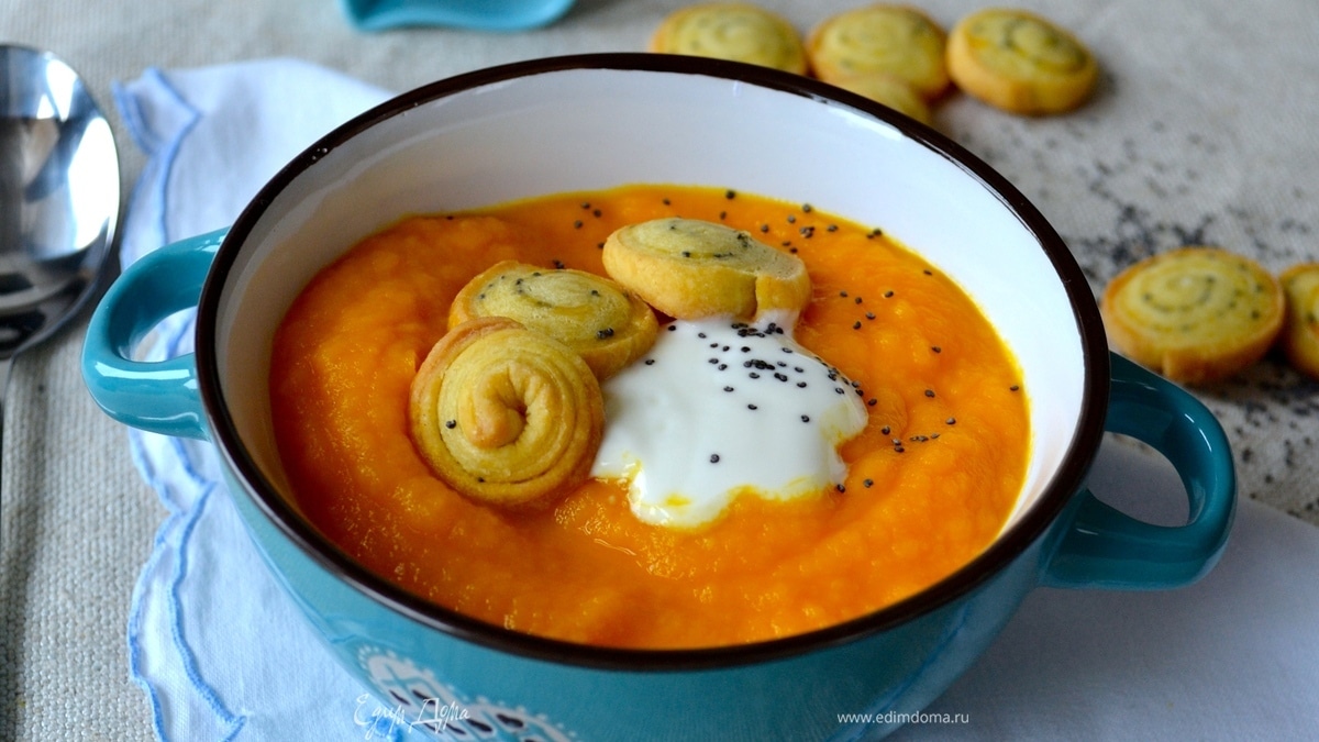 Морковный крем-суп с песочными маковыми сухариками