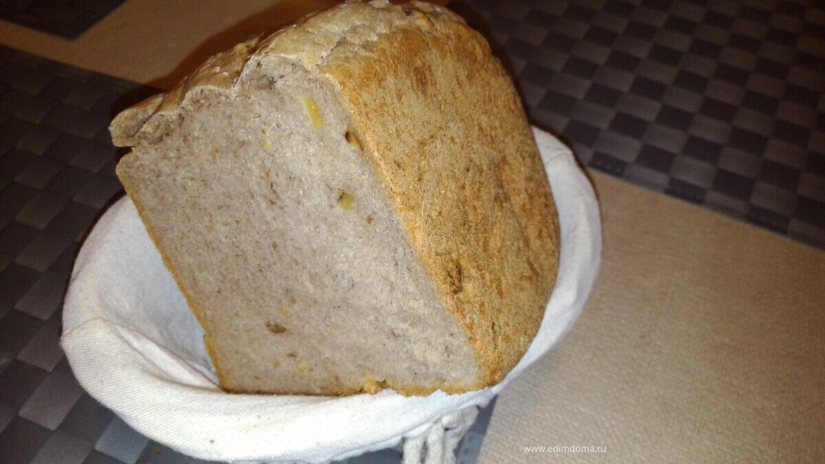 - Шаг 3Выпекать на программе «Основной (обычный) белый хлеб, 1 кг». У меня процесс от замеса до окончания выпечки составляет 3 часа. По звуковому сигналу, когда вы можете добавлять разные добавки, добавить крупно нарезанные обжаренные грецкие орехи. После завершения выпечки хлеб сразу вынуть и поставить остывать на решетку под полотенцем.