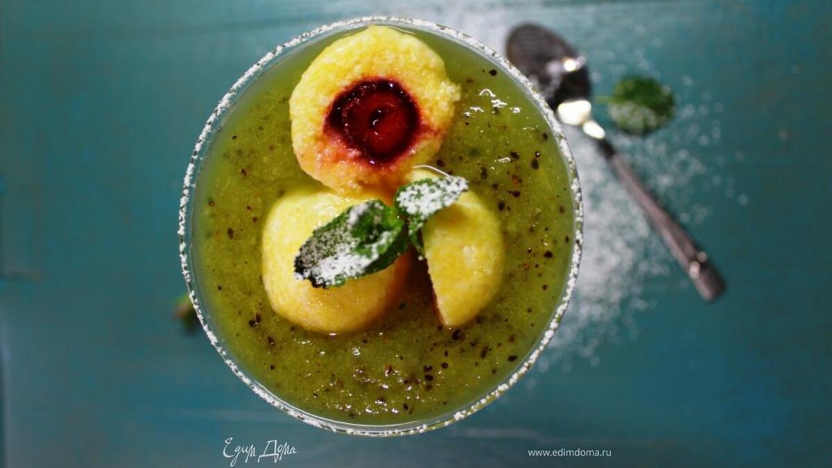 Десерт из киви с творожными клецками