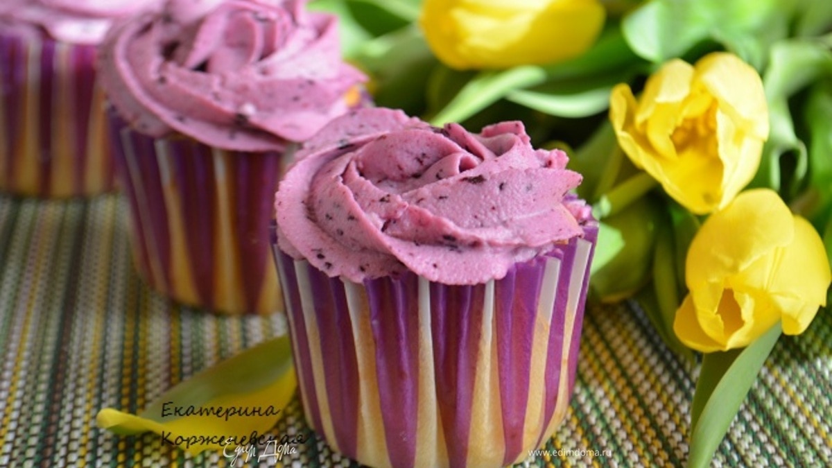 Черничные капкейки с творожно-ягодной начинкой