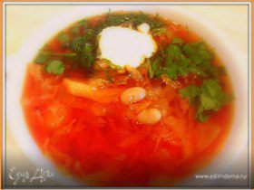 И наконец щедро все это посыпаем зеленью. Еще 1-2 минуты держим кастрюлю на огне, затем выключаем и накрываем нашу кастрюлю с борщом крышкой и даем ему настояться не менее получаса. - Шаг 12