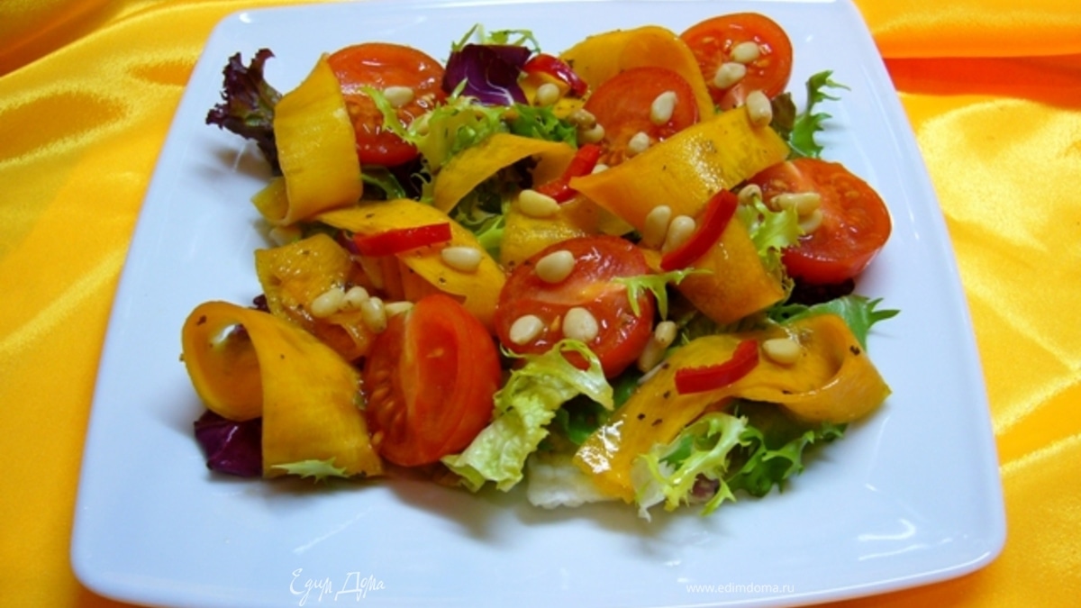 Пользу тыквы переоценить трудно! Она содержит витамины и минералы, много клетчатки, которая надолго продлевает чувство сытости. К тому же в тыкве очень мало калорий! Тыква содержит большое количество редко встречающихся витаминов К и Т. Когда же, как ни весной поддержать свой организм витаминами, при этом не волнуясь о своей талии? Угощайтесь вкусным салатом!