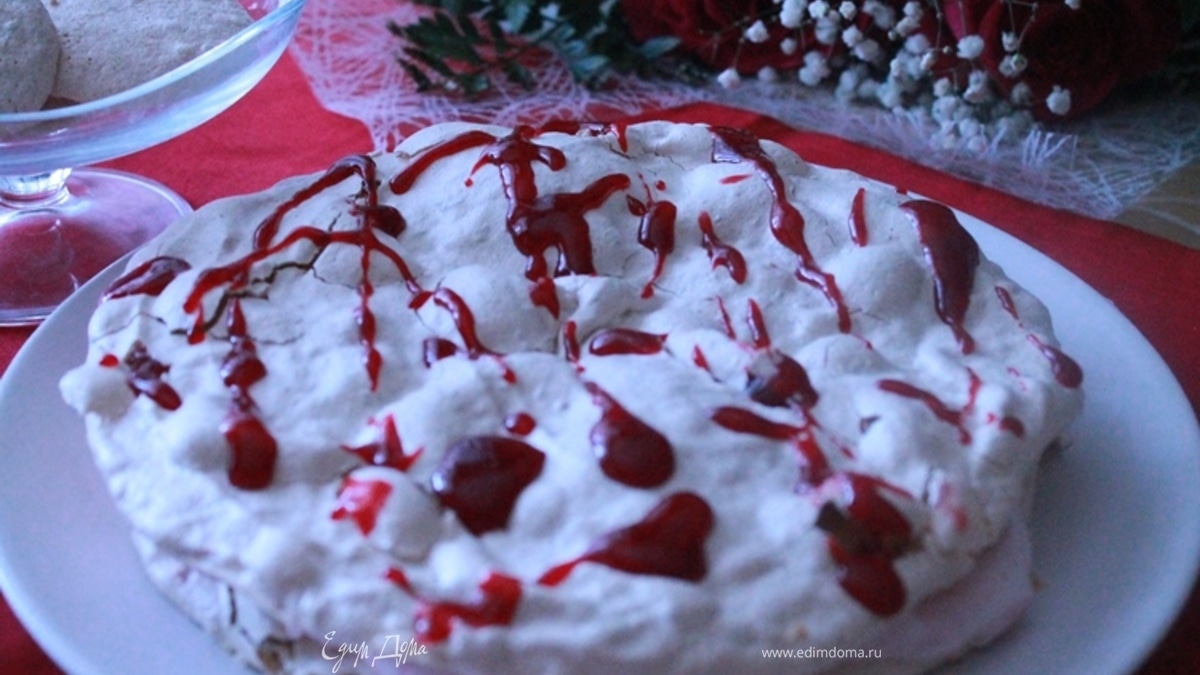 Ореховый торт-безе с малиновым кремом