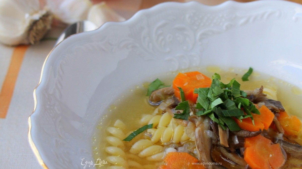 Суп с пастой и вешенками