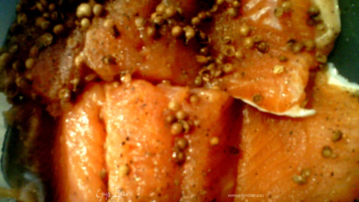 Размять горошины кориандра смешать все ингредиенты, хорошо смазываем форель накрыть пищевой плёнкой и оставить на сутки при комнатной температуре. Жидкость которая будет появляться нужно слить. Я держала в холодильнике, так как у нас очень жарко и увеличила время соления ещё на сутки. А теперь угощайтесь.