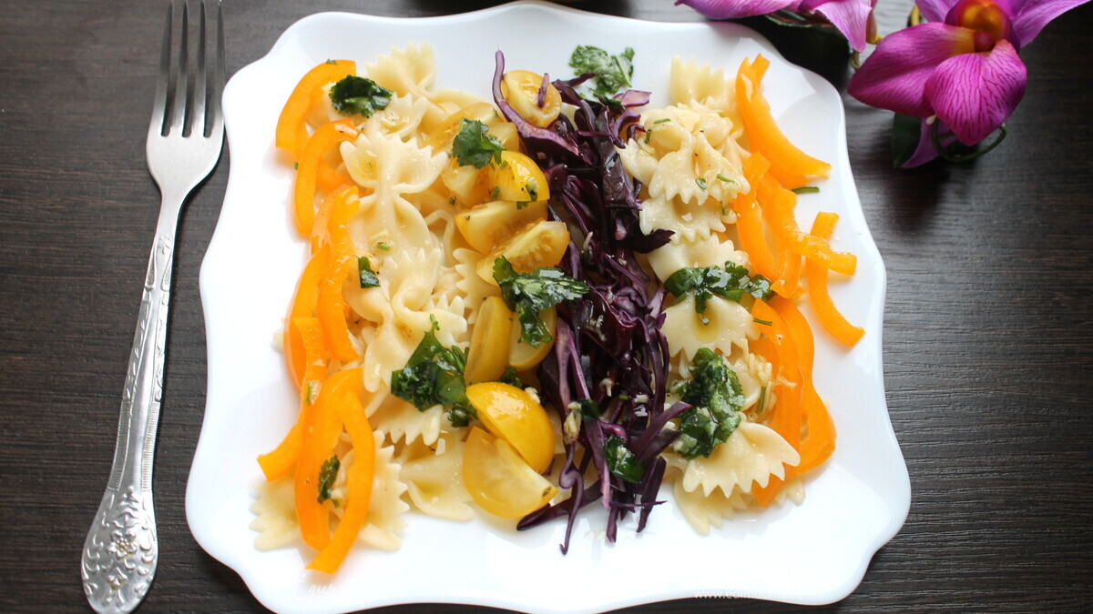 Овощной салат с пастой и пикантной заправкой
