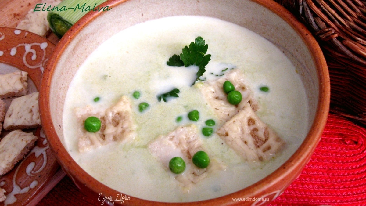 Суп с пореем и зеленым горошком