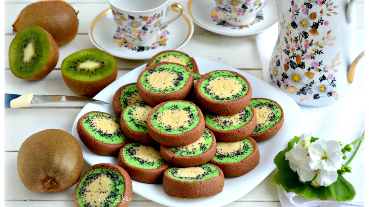 Марина, спасибо за чудное печенье 😊 Очень оригинально, вкусно и красиво. Во время готовки у меня, как выяснилось, было мало красителя, поэтому киви у меня недозрелый pooh_lol ... но вкусный 😋