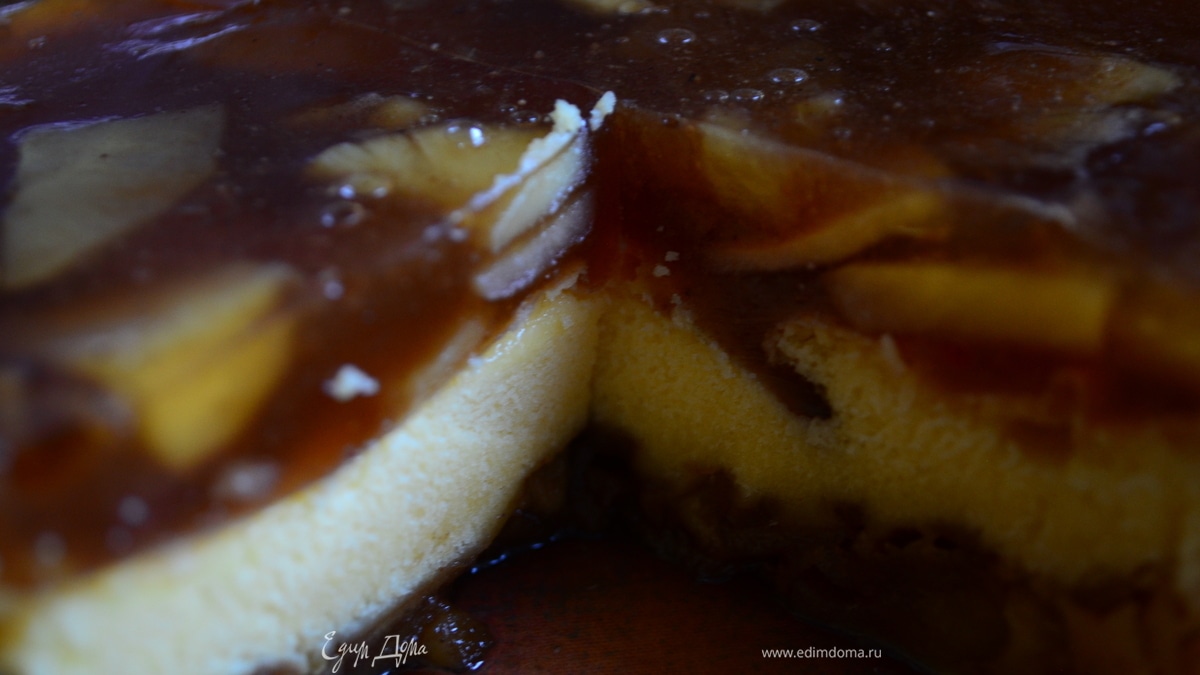 - Шаг 5Когда пирог остынет, а жидкость схватиться и начнет густеть, вылить желе на пирог, оставить в холодильнике на пару часов.