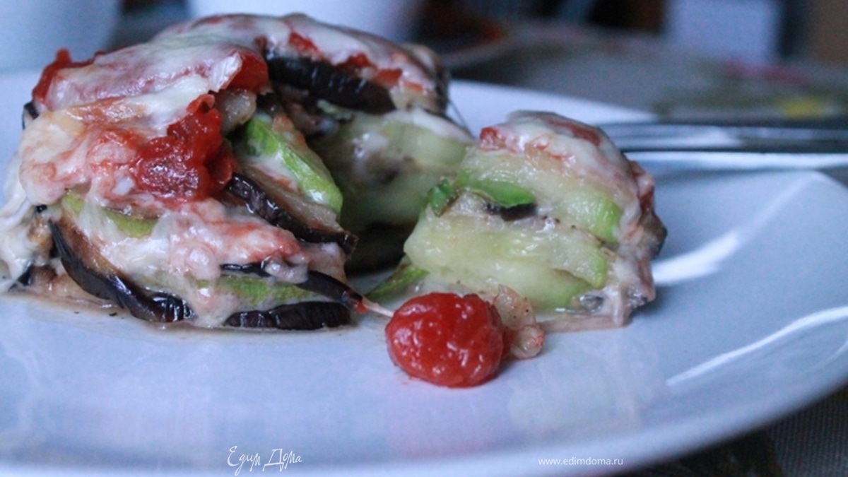 Баклажан и цукини нарезать кружочками и обжарить на сковороде. Чтобы овощи при жарке не взяли много масла, я обжаривала на сковороде с керамическим покрытием почти на сухой сковороде. Также можно запечь овощи в духовке, предварительно сбрызнув их маслом. - Шаг 1Разогреть духовку до 180 градусов.
