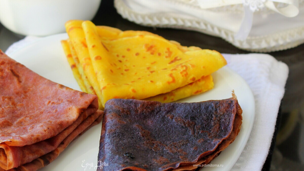 Выпекать блинчики на медленном огне, каждый раз слегка смазывая маслом сковороду. Вторую сторону блинчика выпекать не больше 15-20 секунд. Подавать с медом или вареньем. Приятного аппетита и яркого настроения!