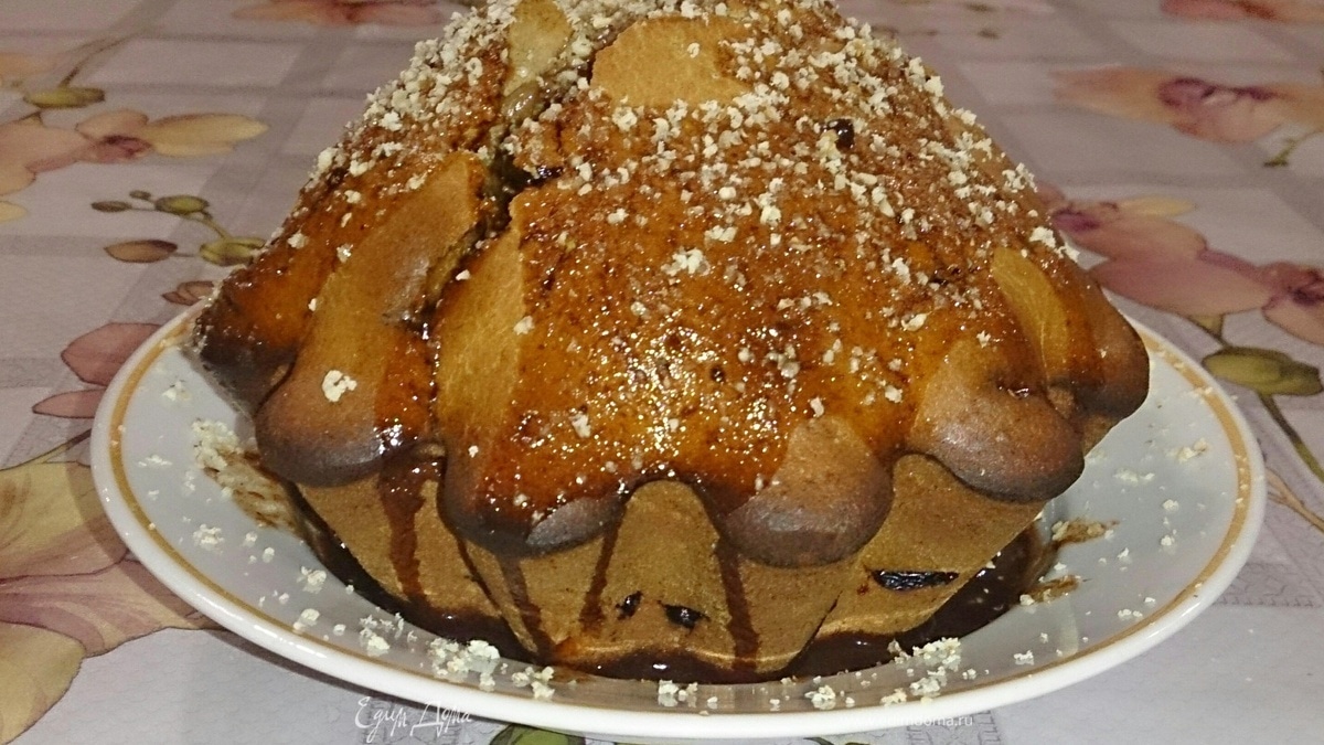 После вынимаем из формы, сверху поливаем отложенной глазурью и посыпаем тертым орехом.