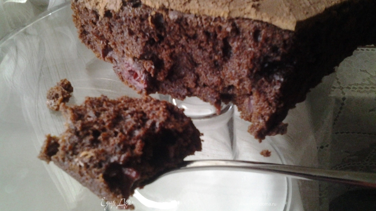 Заварной шоколадный пирог с вишней