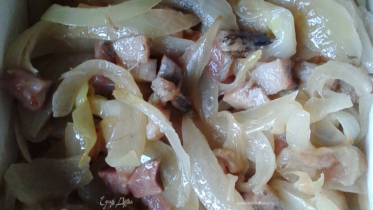 - ПодготовкаЛук очистить и нарезать полукольцами, разделить на 2 равные части.