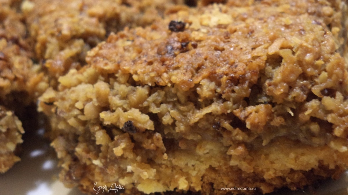 Выпекать при температуре 180 градусов около 40 минут. Вынуть пирог из духовки, оставить на 20 минут, чтобы он остыл, затем разрезать пирог на квадраты, а квадраты разрезать по диагонали на треугольники.