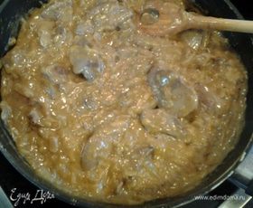 Добавить томатно-сметанный соус. Равномерно перемешать, довести до кипения. Подавать с любым гарниром. Мне особенно нравится с кускусом.