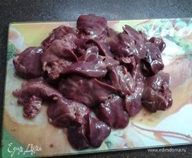 Печень очистить от прожилок, вымыть. Не резать, оставить крупными кусками.