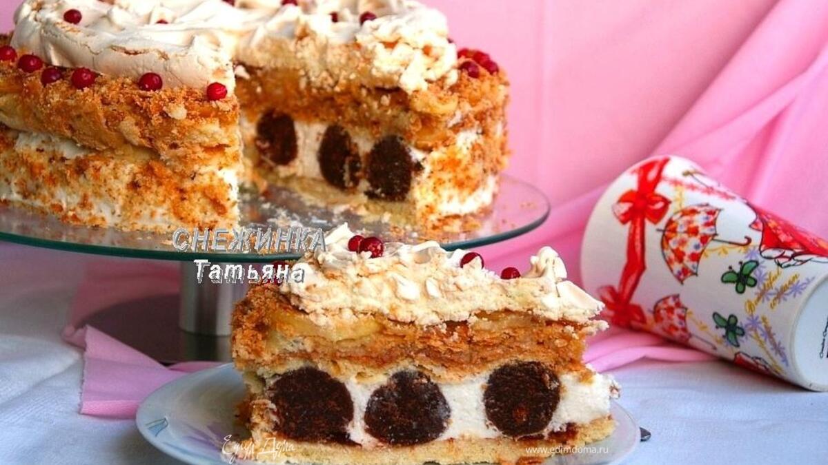 Татьяна, я тоже опробовала ваш шедевр. Делала два вечера. Фото экстерьера добавила :) Общий вкус торта интересный.. Вкусный, в общем :) Немного не устроил слоеный слой в процессе разрезания и кусания, очень тяжело кусочком отделить. Лимонный курд вызвал восторг у племянника просто уже названием :) Часть безе с верхушки ушло в рот 4-х летней представительницы нашего семейства, как только появилась возможность остаться ей наедине с тортом. Мне очень понравилась идея (вкус) с яблоками. Друзей-знакомых, думаю, впечатлил срок исполнения торта :))) Если вдруг решусь повторить сей подвиг, то вот такие коррективы внесу: - шоколадные шарики может быть попробовать разложить двумя окружностями, тогда и на срезе останутся видны, и кусочки торта не будут разваливать. и еще может не стану их сильно уплотнять, может быть даже эти окружности крошкой выкладывать и потом чуть "спрессовывать" уже на корже... - слоеное тесто точно нужно в крошку сначала превращать.... только не слипнется ли оно опять в неразрезаемый слой после "свадьбы" с курдом?? Прошу прощения за советы, а если их убрать, то торт действительно оригинальный и его уже нет: 6,5 человек за пол вечера расправились с двухдневным шедевром :)