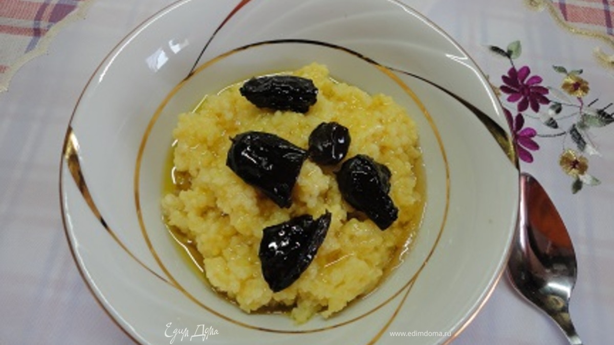При подаче на кашу выложить очищенный от косточек чернослив. Можно полить маслом. - Шаг 3