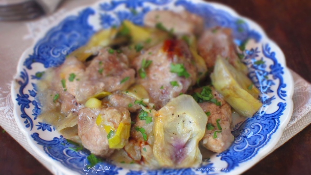 Свинина с артишоками и луком-пореем