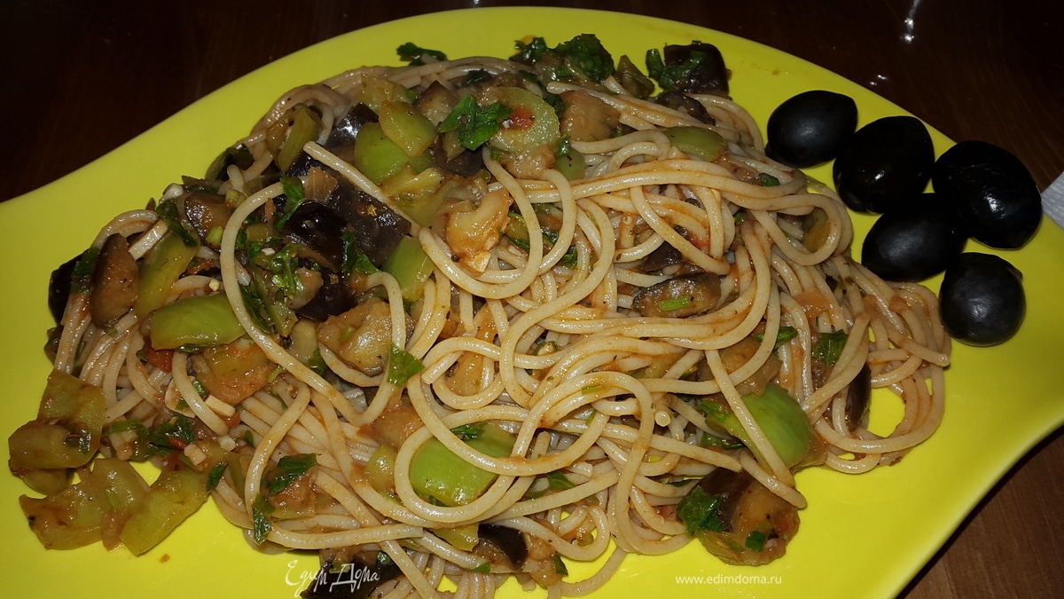 Спагетти с баклажанами и болгарским перцем