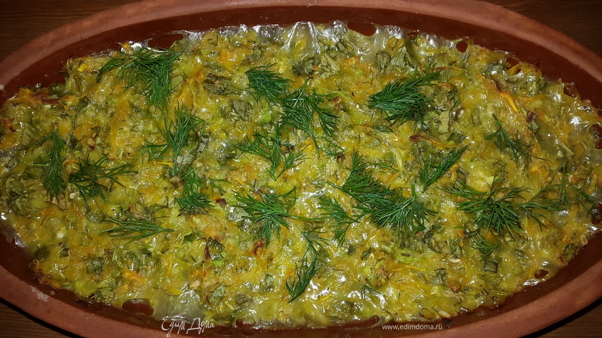 Кабачково-тыквенная запеканка с зеленью и овсяными хлопьями