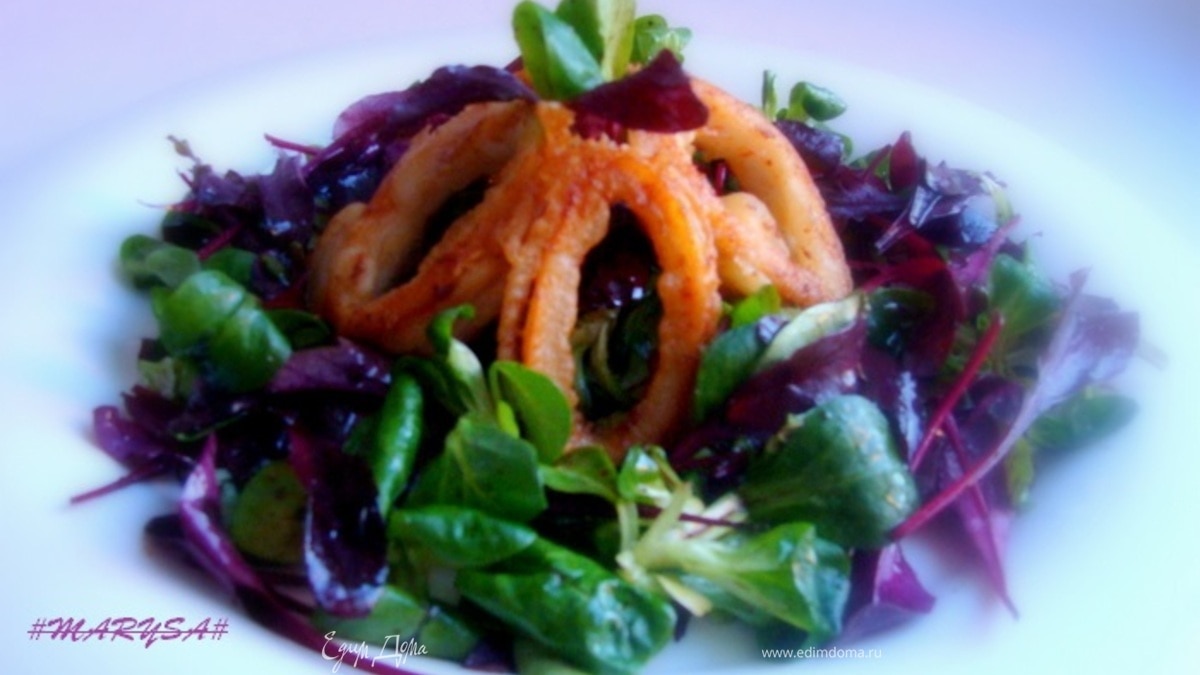 Теплый салат с кальмарами