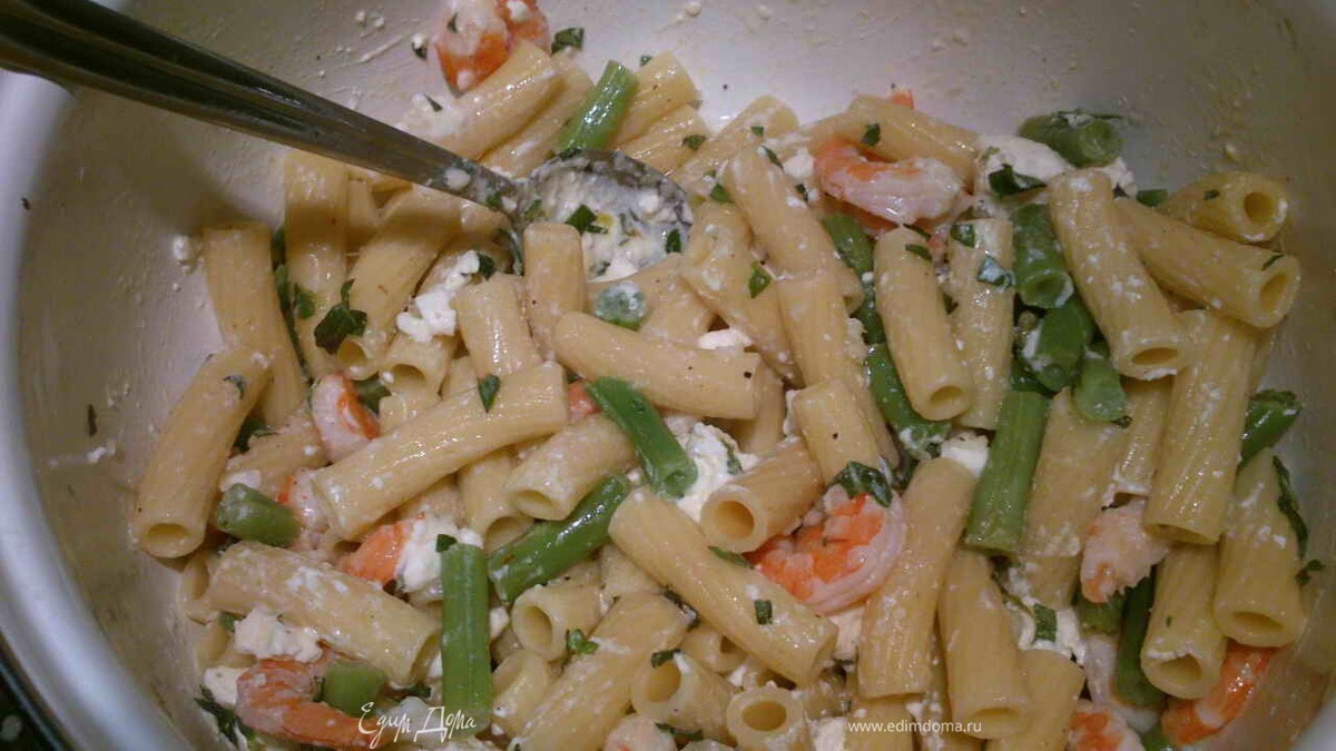 Два приема - варить и смешивать - позволяют приготовить пасту, в которой сочетаются разные вкусы и консистенции: от сладковатых креветок и свежей мяты до нежной феты и хрутяжей фасоли.