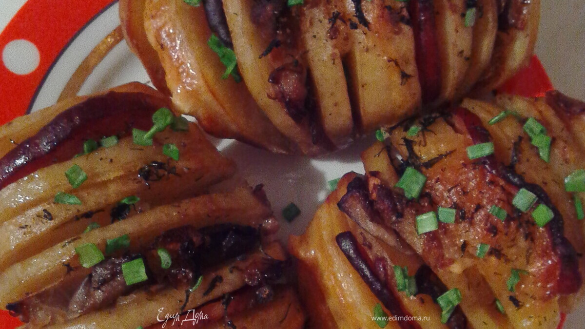 Такая картошечка-гармошка 😎 даже без начинки вкусна,если полить растопленным маслом с чесночком,я тоже выставляла))) 😄 А с бекончиком объеденье просто))) 😋
