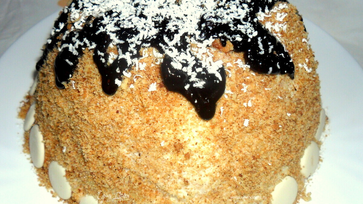 Вынуть, перевернуть на блюдо и снять пленку. Посыпать крошкой и украсить по желанию. Я чуть полила растопленным шоколадом. - Шаг 13