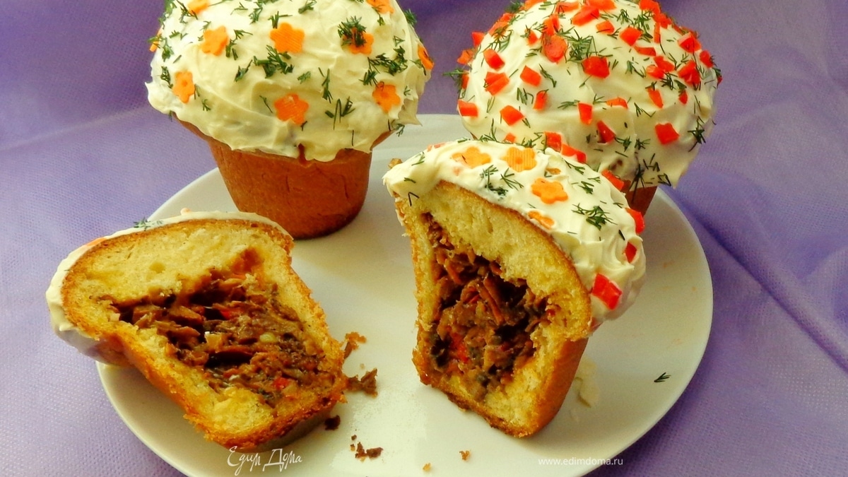 Для того, чтобы ваши гости не скучали и не расслаблялись, предложите им эти куличи в качестве закуски. Удивление, восклицания «Ой, а что это?», а потом восхищение вам гарантируются.