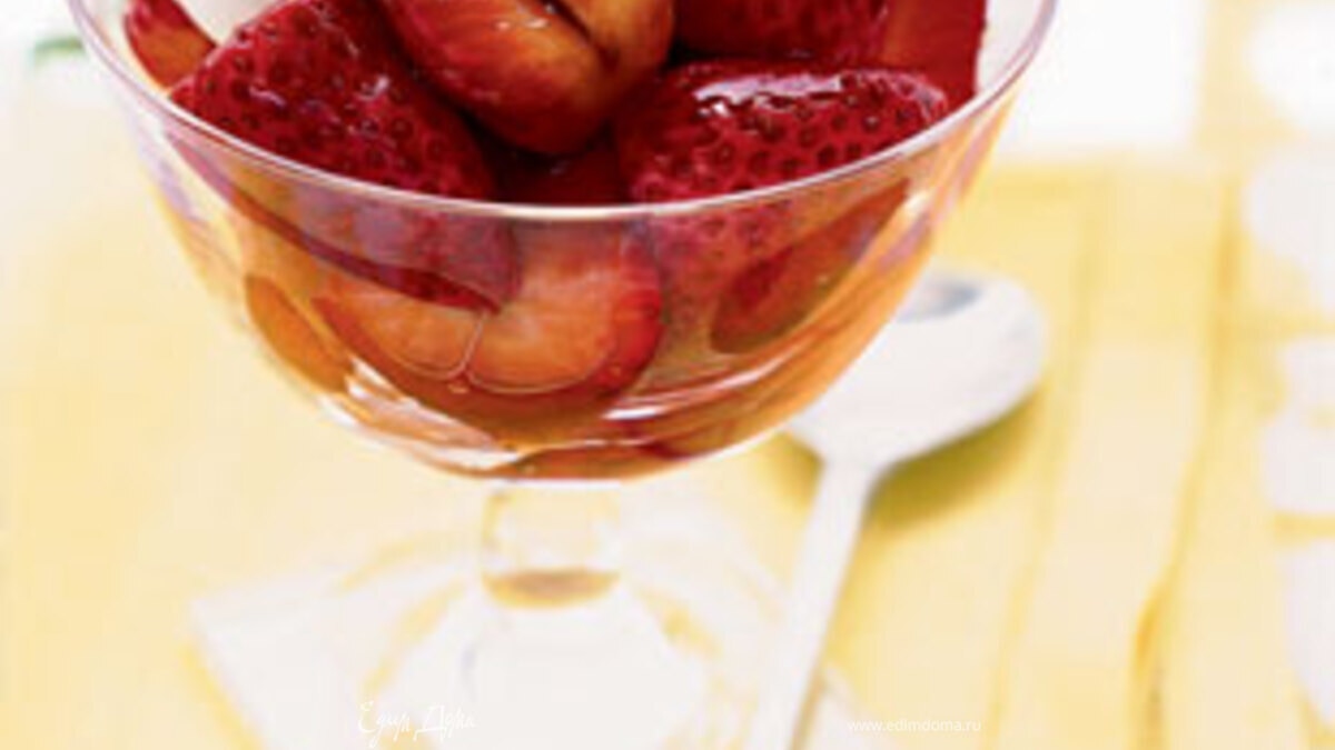 - Шаг 1Порезать клубнику пополам. Мелко нарезать листья мяты. Смешать клубнику, мяту, ликер и поставить в холодильник на час, накрыв сверху крышкой. Время от времени помешивать. Тем временем натереть цедру 2 лимонов, а сок выдавить. Взбить венчиком маскарпоне с 3 ст.л. сока лимона и йогуртом. Добавить 1 ст.л. сахара и половину цедры.Поставить в холодильник. Разделить клубнику по 4 пиалкам, сверху выложить маскарпоне и притрусить оставшейся цедрой.