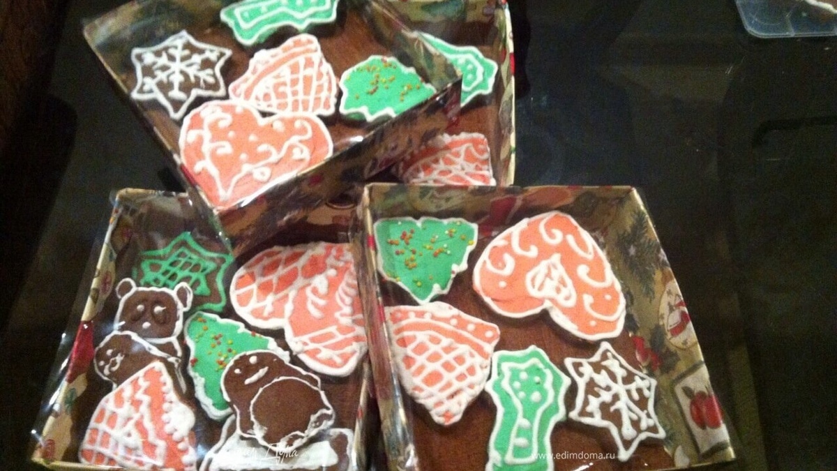 Теперь самое важное, пряники могут показаться сразу твёрдыми, им нужно дать настояться. Для этого сложить их в герметичную посуду, положить корки от апельсинов или мандаринов и четвертушки яблока. Настаивать минимум три дня. Пряники будут мягкими и ароматными. После чего можно их распивать, можно и заранее, но у меня при настаивании глазурь подплыла первый раз, поэтому дальше расписывался после выдержки. Теста по рецепту на очень много противней - семь, я делаю половину. Также использовала тесто для пряничного домика, можно посмотреть в фотоотчетах. Относительно глазури, я нагревала 1 белок с 110 гр сахарной пудры до 45С, потом добавила сок половинки лимона и взбила до нужной консистенции.