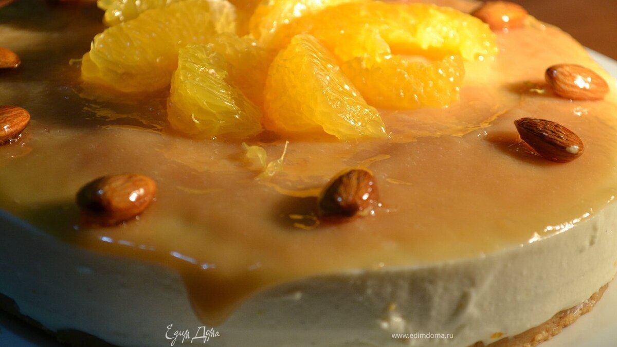 Когда чизкейк готов его нужно достать из формы. Я по краям провожу горячим ножом. Далее украшаем. Можно персиками... - Шаг 13