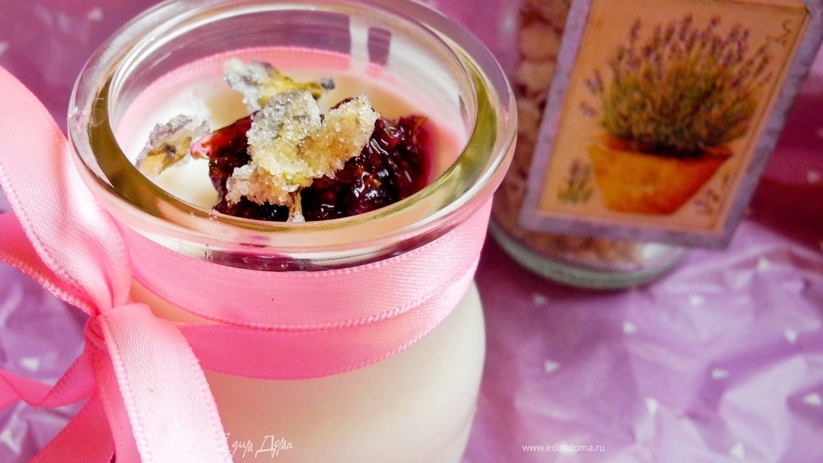 Достаем из холодильника, украшаем по вкусу, добавляем любые дополнения (у меня засахаренные цветы фиалки и фиалковый конфитюр) и наслаждаемся! :)