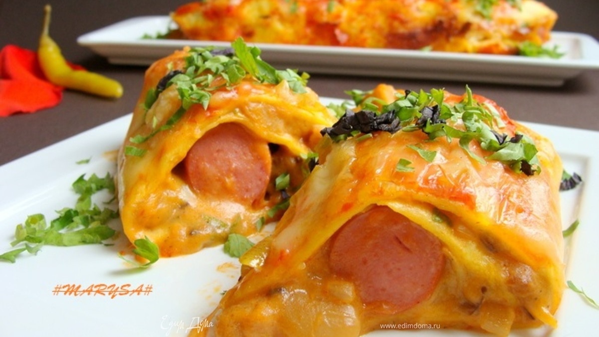 У меня были большие лепешки и сосиски пришлось взять самые длинные.
