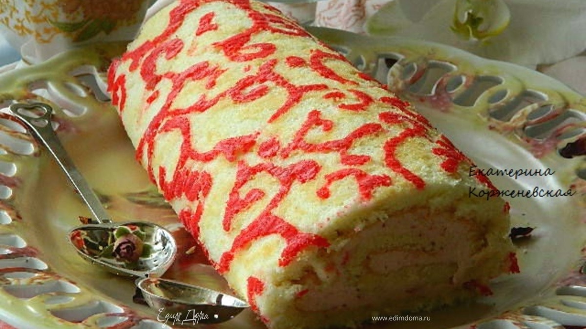 Бисквитный рулет с клубничной начинкой "ажурный"