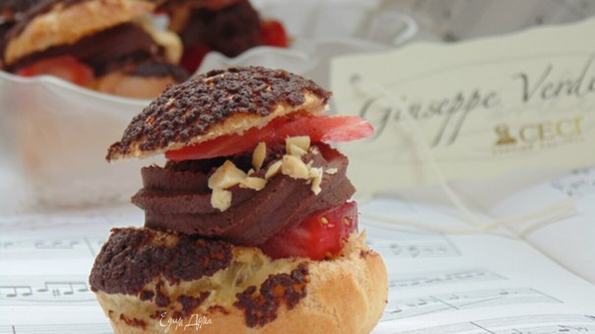Шу с кракелином, шоколадным кремом и клубникой