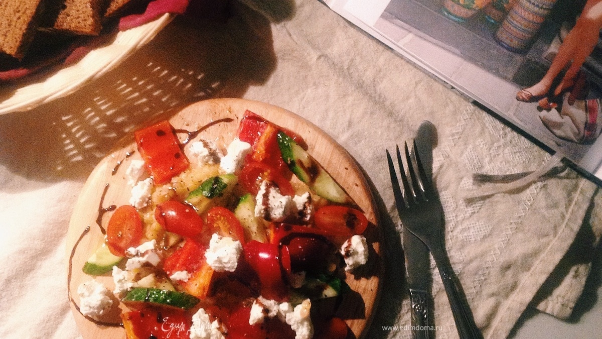 - Шаг 3Остывшую чечевицу выкладываем на блюдо, слегка приправляем, и на нашу подушку из чечевицы выкладываем овощи и творожный сыр. Заправляем наш вкуснейший салат сверху.