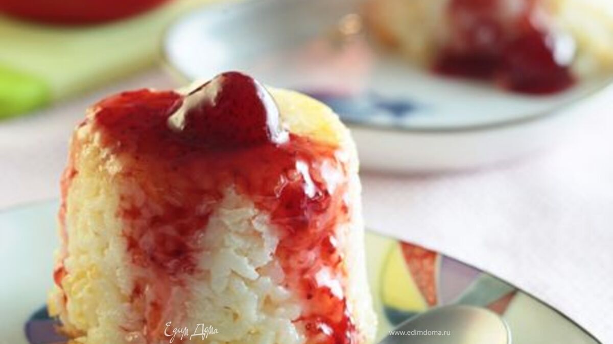 Секрет хорошего рисового пудинга — это долгое, медленное и аккуратное приготовление. Начните готовить его сразу после завтрака, и уже к обеду он будет готов. Вместо клубничного джема можно взять желе из черной смородины.