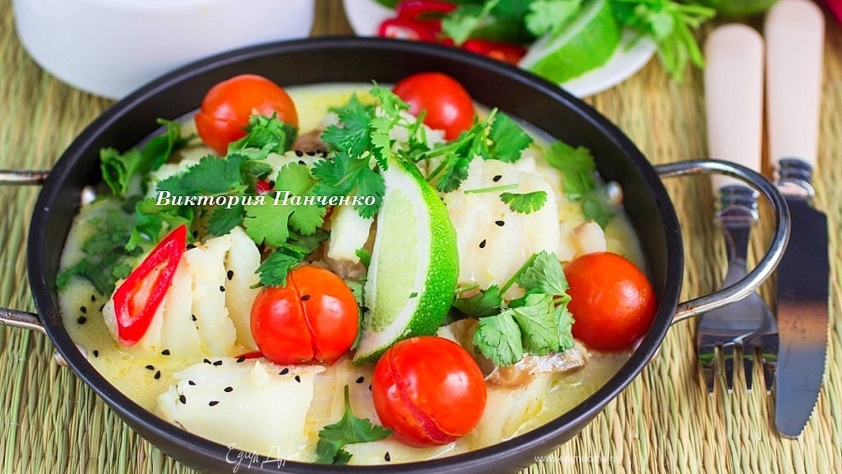 Треска в кокосовом молоке с лаймом и кинзой