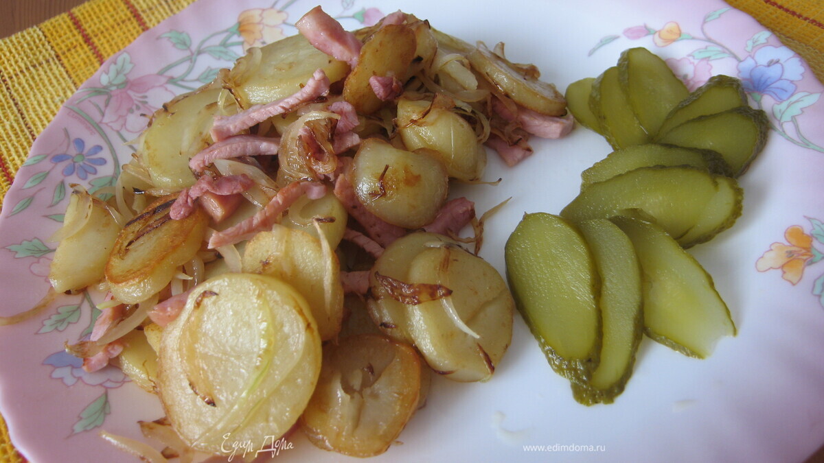 Разнообразит не только будничный стол, но и праздничный. Бабушка чаще всего готовила эту вкусняшку из сырого картофеля с домашним копчёным мясом, но в таком случае блюдо получается высококалорийным, так как на жарку сырого картофеля уходит намного больше жира. Я же использую сыровяленое или сырокопчёное мясо, но вполне подойдёт нежирный бекон или варённо-копчённая колбаса. Жир использовать свиной, заменять ничем не рекомендую!!!! Время приготовления указано без учёта варки картофеля.Любителям картофеля ОЧЕНЬ рекомендую!!!