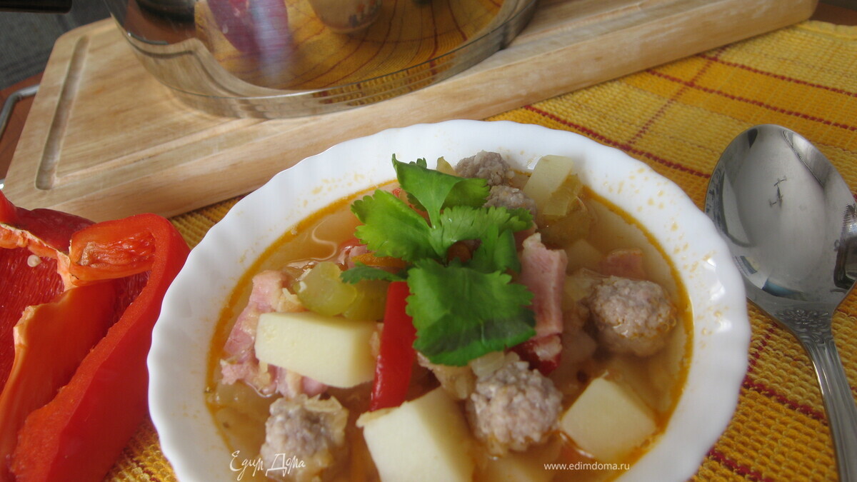 Густой чечевичный суп с фрикадельками и беконом